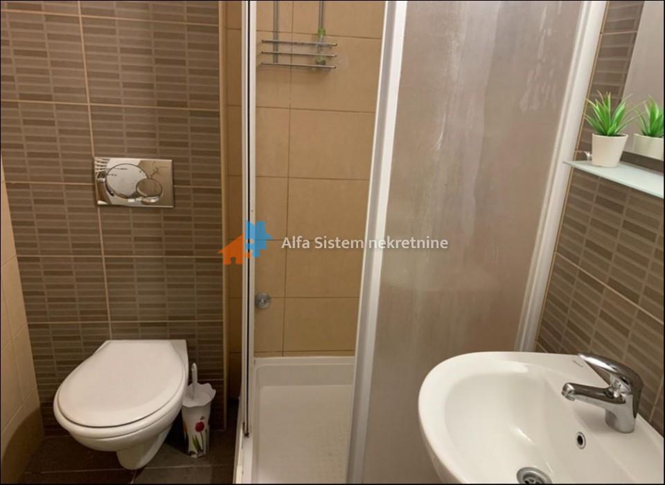 A newly built, stylishly furnished and fully equipped apartment located directly across from the Faculty of Architecture. The layout includes a separate bedroom, open-plan living and kitchen area, and a bathroom.