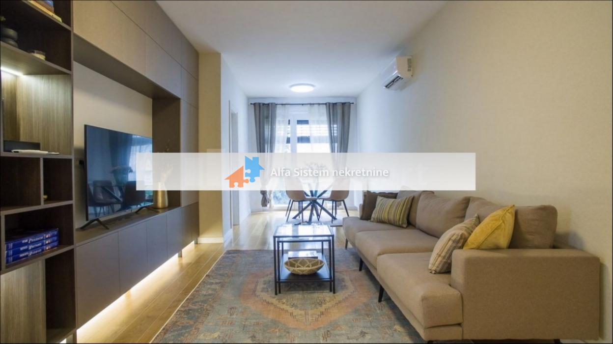 Beautiful, fully furnished, new and unoccupied 50-square-meter apartment in the most attractive part of Gospodara Vu?i?a Street, in the Vra?ar municipality. The apartment consists of an entrance hallway, living room, dining area, kitchen, bathroom, one bedroom, and a comfortable terrace. It is located on the third floor, facing east, with a view of the courtyard, very bright, spacious, and equipped with high-quality furniture and appliances. A garage space is included in the rent. The future tenant only needs to bring their personal belongings because, in addition to all the appliances (washing and drying machine, dishwasher, stove, hood, refrigerator, freezer, two televisions, air conditioner), the apartment is also equipped with small household appliances (iron, hairdryer, vacuum cleaner, coffee maker), linens (pillows, blankets, duvets, towels, covers), and dining and cooking utensils. Perfect location, just 2 minutes away from a supermarket, gym, cafes, and public transportation.