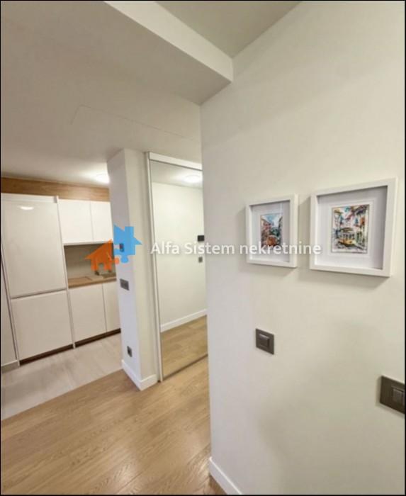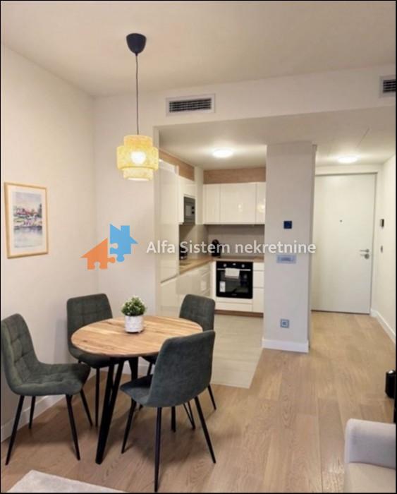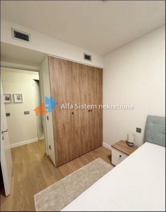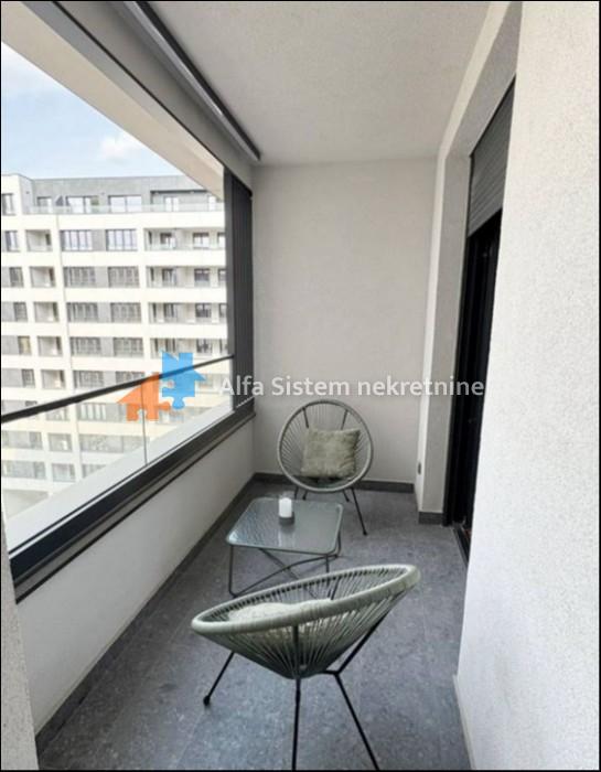 Izdaje se potpuno nov, neuseljavan i luksuzno opremljen stan u modernom stambeno-poslovnom kompleksu Airport Garden, u Bloku 65 na Novom Beogradu.