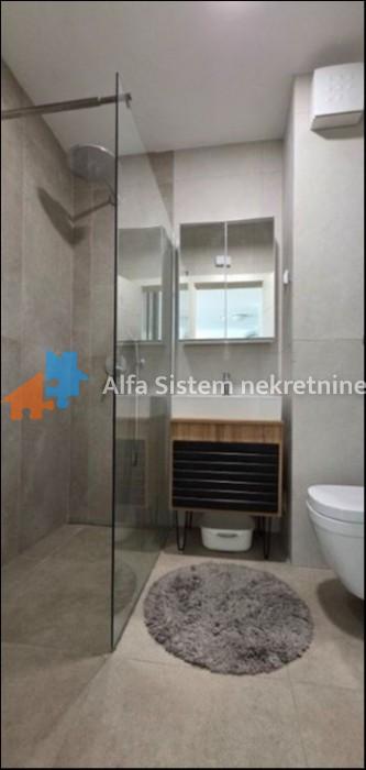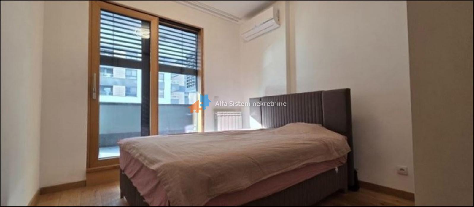 Stan se sastoji od dnevnog boravka sa kuhinjom i izlazom na terasu, spavaće sobe sa izlazom na terasu i kupatila. Potpuno je opremljen novom ugradnom belom tehnikom i kvalitetnim nameštajem, sa ALU-drvo stolarijom, višeslojnim parketom i dve inverter klima jedinice. Grejanje je centralno, uz mogućnost kontrole potrošnje putem smart home sistema.