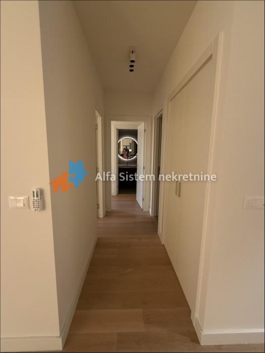 Stan je polunamešten i sastoji se od prostranog dnevnog boravka sa izlazom na terasu sa pogledom na TC Galeriju, kompletno opremljene kuhinje, dve spavaće sobe sa ugradnim plakarima, dva kupatila i vešernice sa mašinom za pranje i mašinom za sušenje veša.