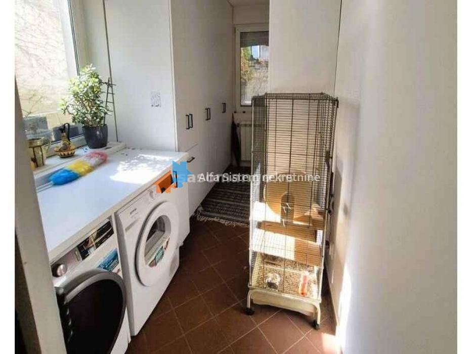 Izdaje se prostran, luksuzno opremljen četvorosoban stan u novogradnji, površine 100 m². Stan se nalazi u visokom prizemlju stambene zgrade, ali pruža osećaj samostalnog objekta, jer poseduje sopstveni ulaz, kapiju, alarmni sistem i video nadzor.