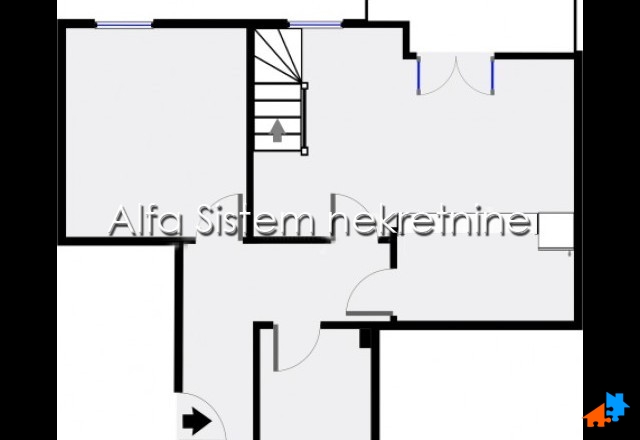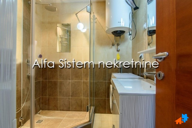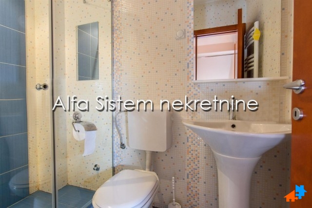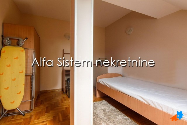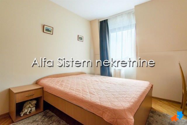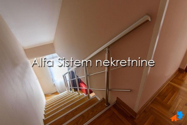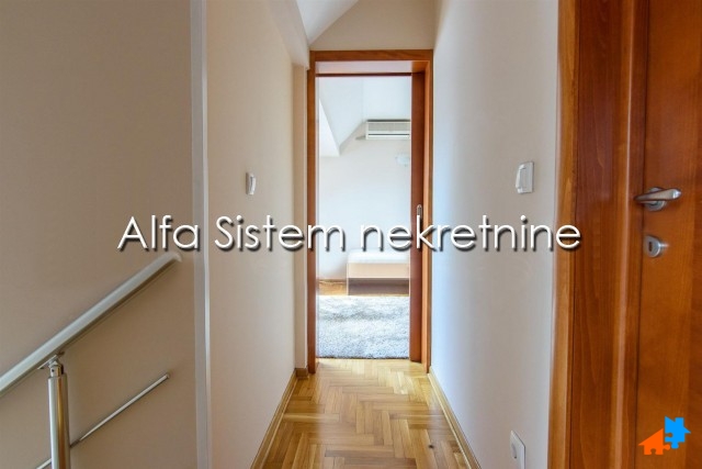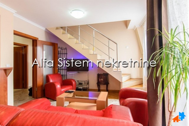 Stan se prostire na dva nivoa i ima dva kupatila, tri spavaće sobe i lepu terasu. privatno parking mesto+50 eur.